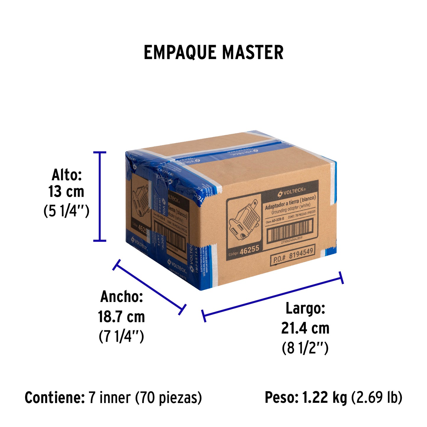 El Adaptador de 3 a 2 Volteck AD-32B-G, disponible en color blanco y a granel, es un componente eléctrico esencial diseñado para permitir la conexión segura de aparatos con clavijas de 3 pines (polarizadas y aterrizadas) en tomas de corriente antiguas de 2 orificios. Este adaptador es fundamental para mantener la funcionalidad de sus equipos, mientras se asegura una conexión eléctrica estable y segura, canalizando la corriente de manera adecuada.