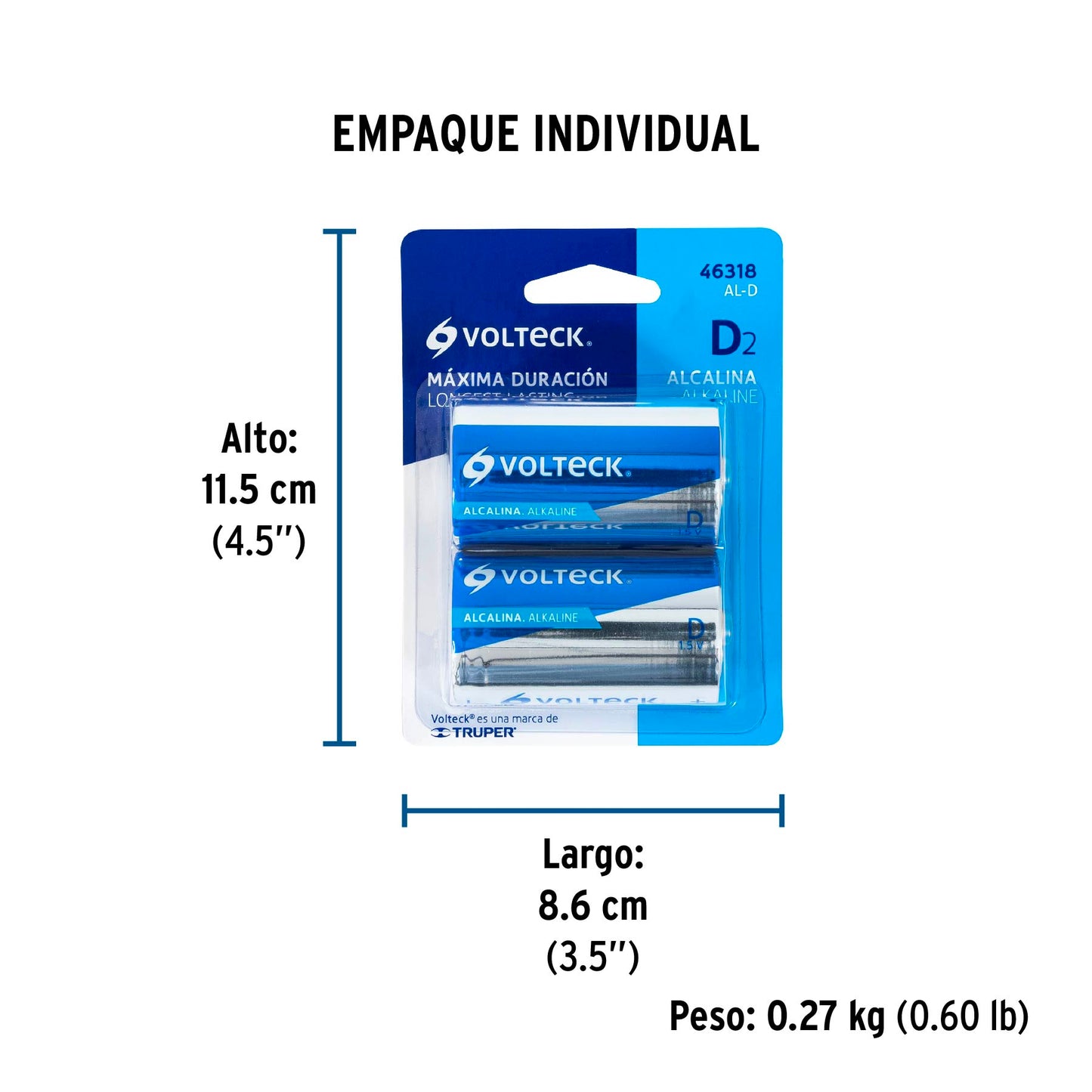 Blíster con 2 pilas alcalinas D, VOLTECK | AL-D | 46318
