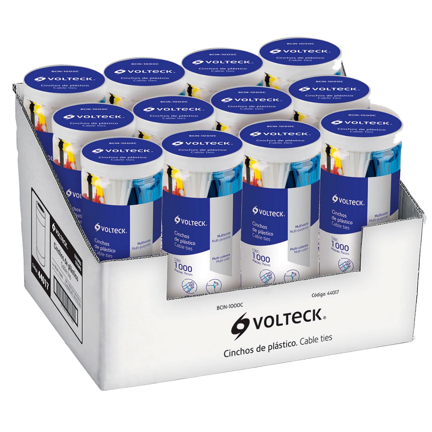 Bote con 1000 cinchos plásticos en colores surtidos, Volteck | BCIN-1000C | 44017