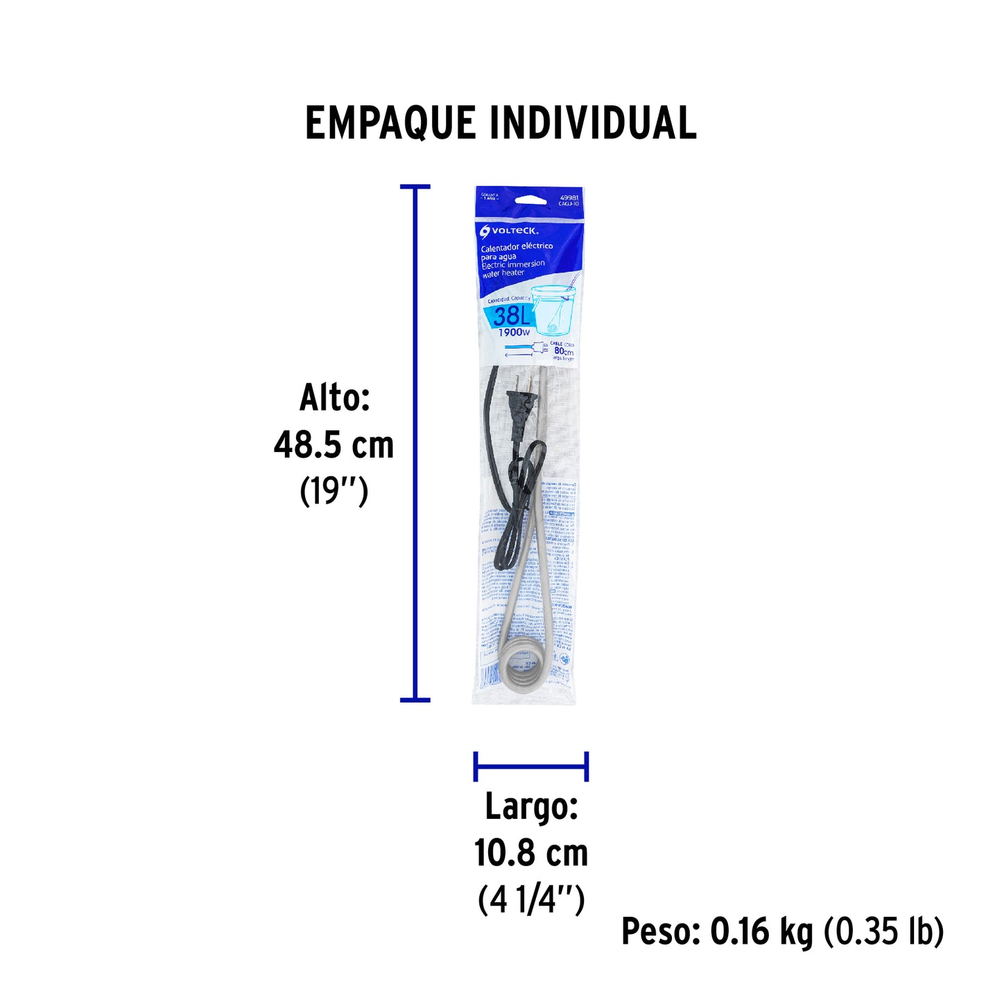 Calentador de inmersión p/agua #10 de 38 L, 1900 W, Volteck | CAGU-10 | 49981