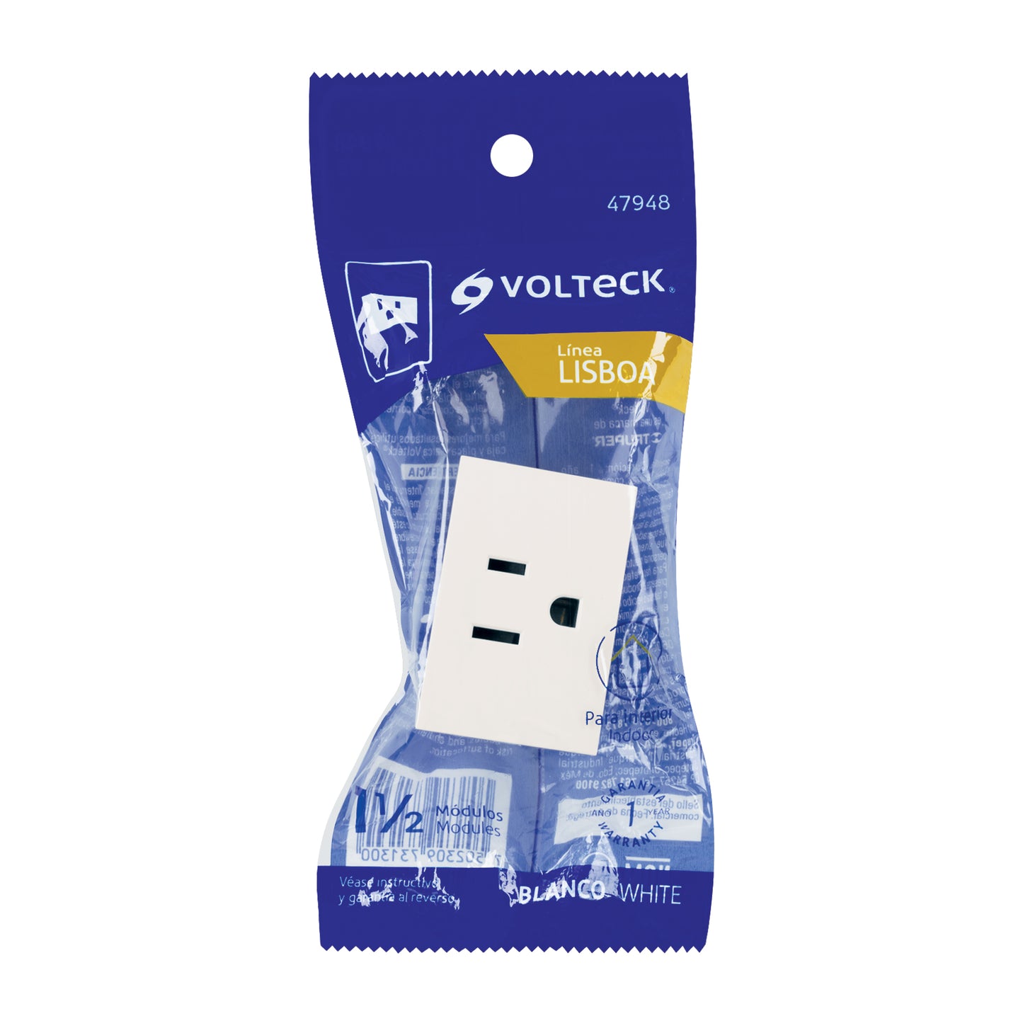 El Contacto Aterrizado de 1.5 Módulos Volteck COA15-LB, perteneciente a la línea Lisboa y con un moderno acabado en blanco, es un componente eléctrico fundamental para cualquier instalación que priorice la seguridad. Su diseño modular permite una fácil integración en las placas de la misma línea, ofreciendo una toma de corriente segura con conexión a tierra que protege los aparatos conectados contra descargas eléctricas y sobretensiones.