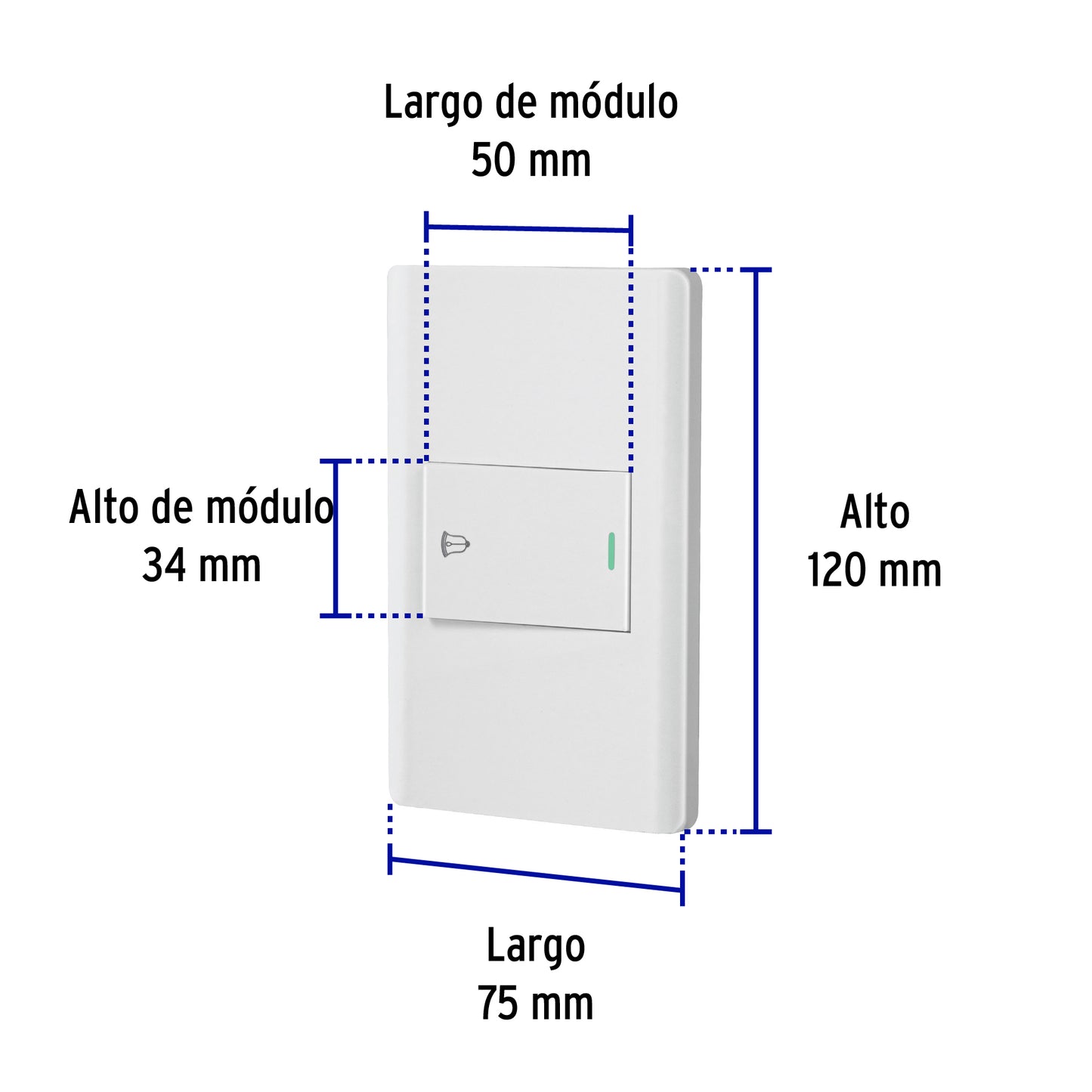 La instalación de la placa es sencilla, se adapta a las cajas eléctricas estándar. El interruptor de timbre permite controlar el encendido y apagado de una luminaria, lo que es vital para la funcionalidad de los espacios.