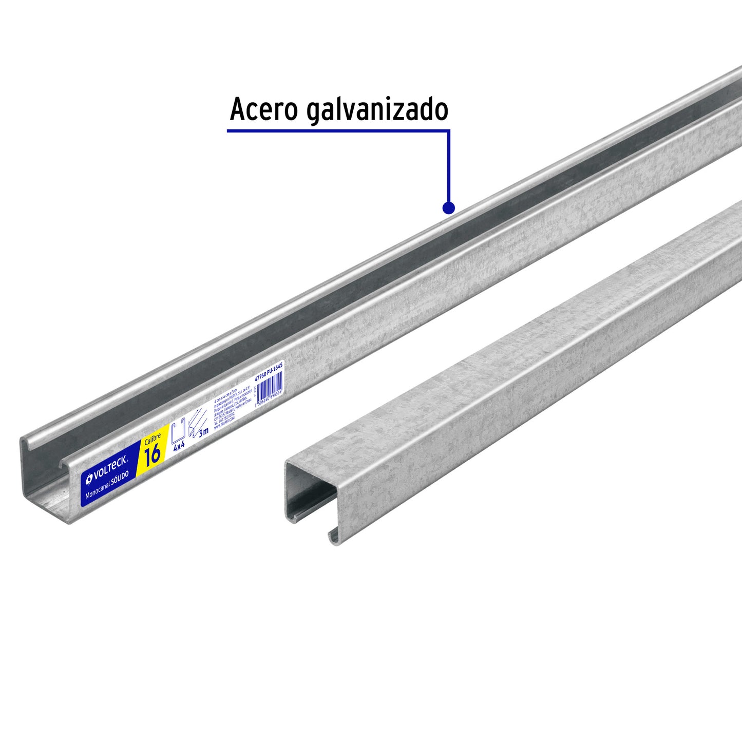 Perfil monocanal sólido de 3 m, 4 x 4 cm cal. 16, VOLTECK | PU-164S | 47760