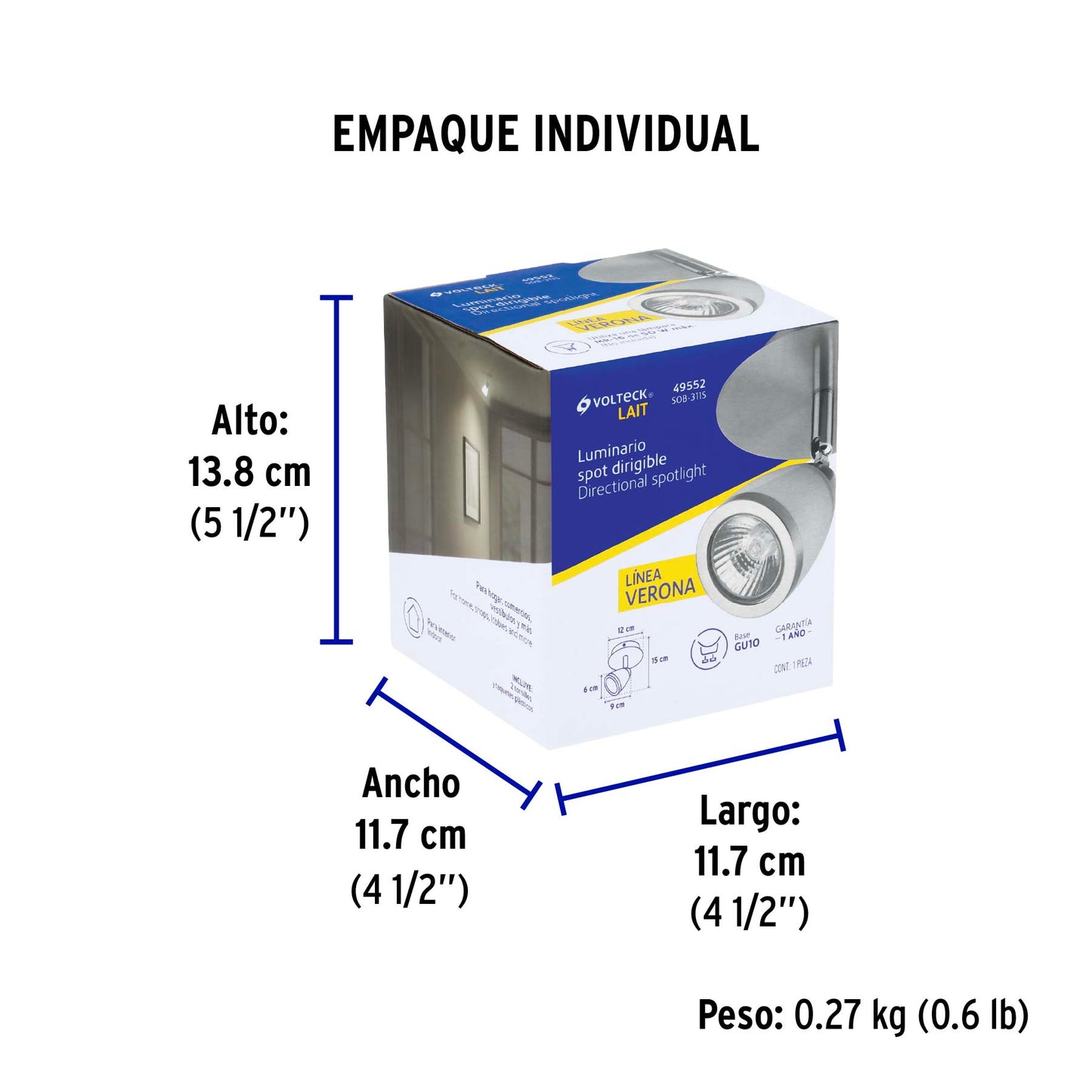 Luminario de sobreponer 1 spot base GU10, Verona, Volteck | SOB-311S | 49552