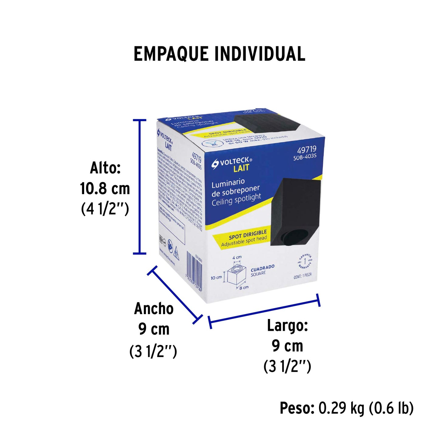 Luminario de sobreponer c/spot dirigible, cuadrado, negro | SOB-403S | 49719