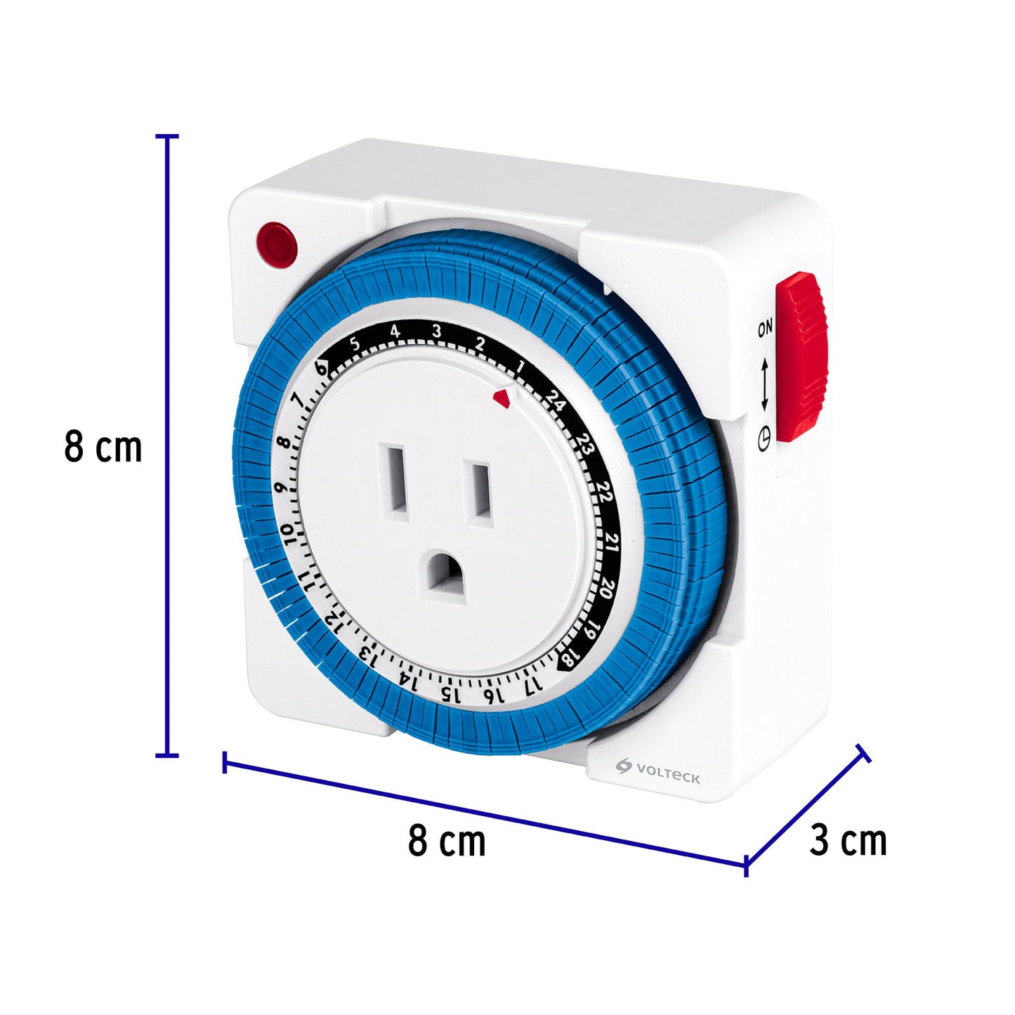El Mini Temporizador Analógico Volteck TEM-1M es un dispositivo de control eléctrico sumamente práctico y eficiente, diseñado para automatizar el encendido y apagado de aparatos electrónicos con un máximo de un evento de programación. Su formato compacto y su interfaz analógica simple lo hacen extremadamente fácil de usar, permitiendo al usuario programar el temporizador en intervalos de 15 minutos para una automatización precisa.