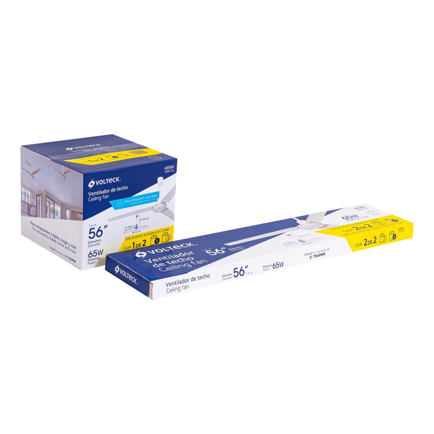El ventilador de techo de Volteck, clave VENT-56, está diseñado para la ventilación de interiores. Su motor de alta eficiencia ofrece un flujo de aire potente y silencioso, lo que es vital para un ambiente fresco y saludable. Con 56" de diámetro, es ideal para espacios de gran tamaño.